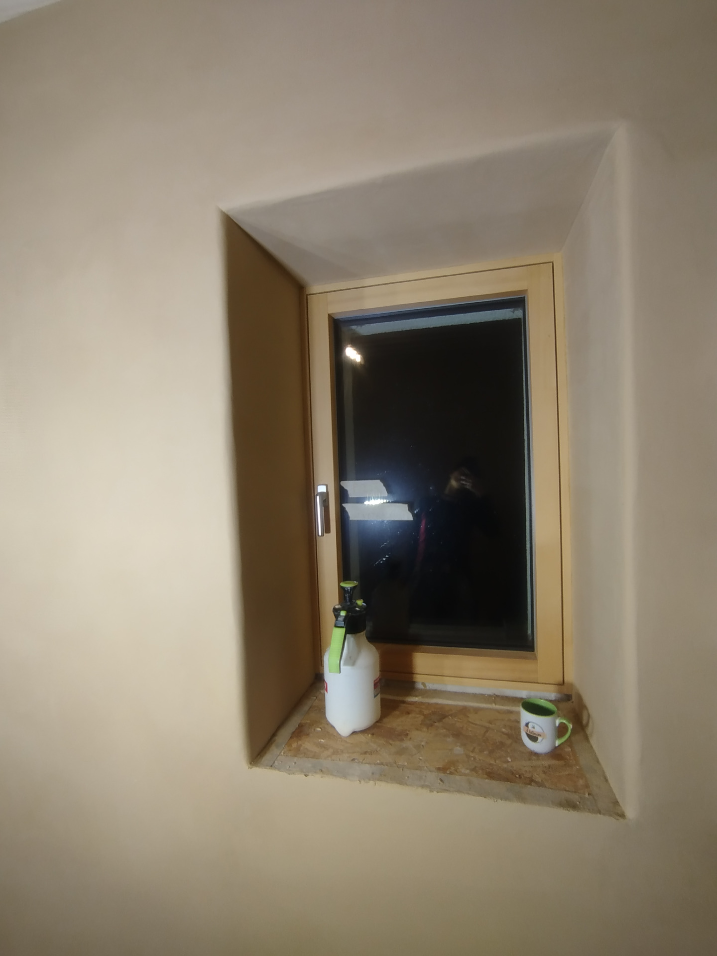 Hladené biele hlinené omietky s jemnou štruktúrou vytvorenou pomocou hladítka. Veľa detailov, práca ako stvorená pre mňa.