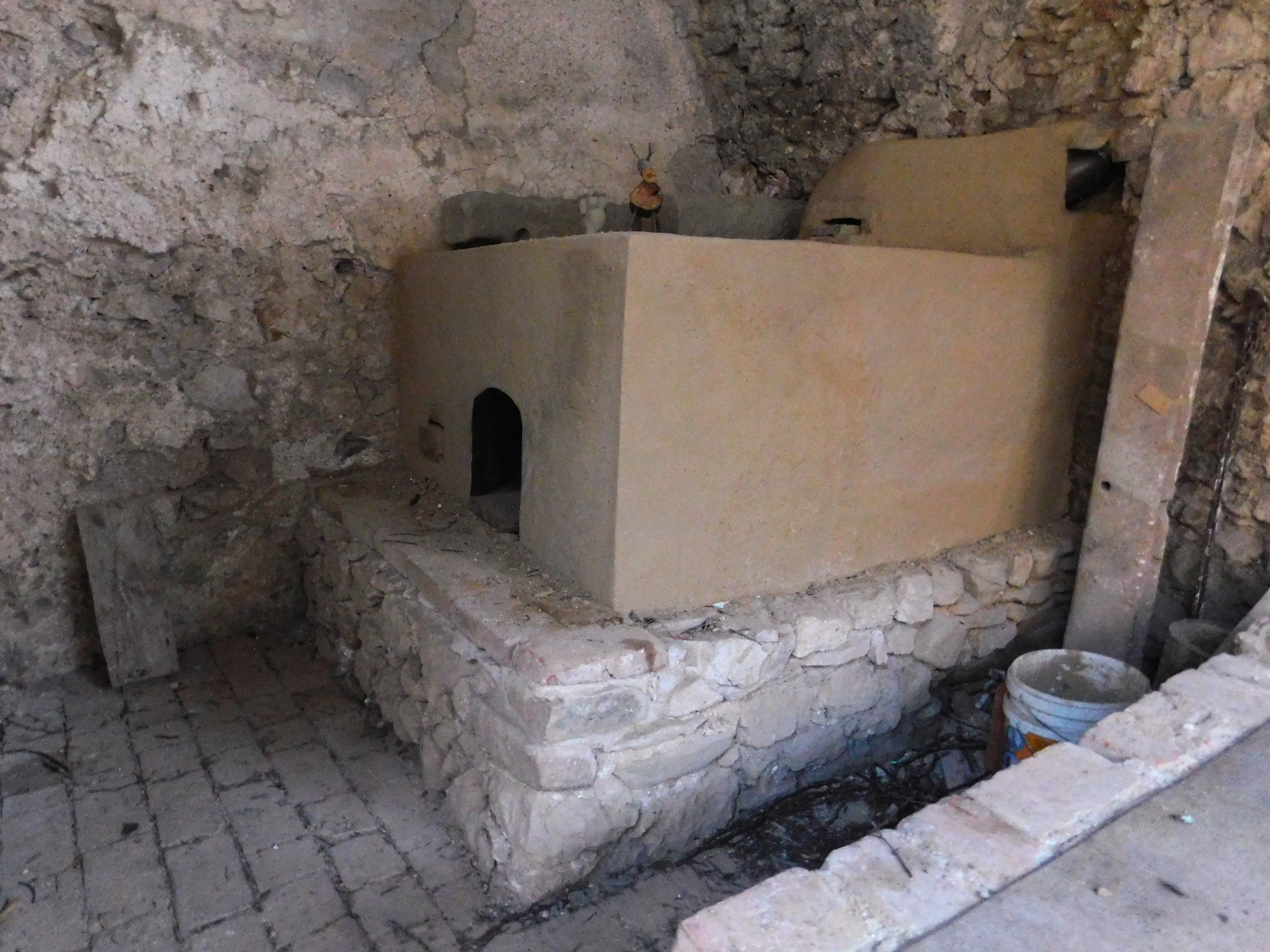 Oprava pôvodnej hlinenej chlebovej pece na hrade Uhrovec podľa pôvodného historického zloženia. Lokálny materiál.