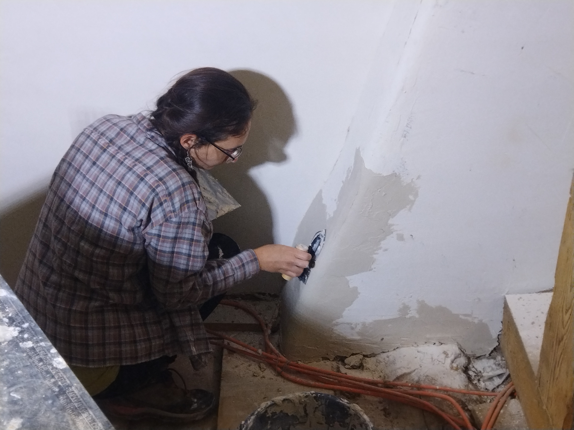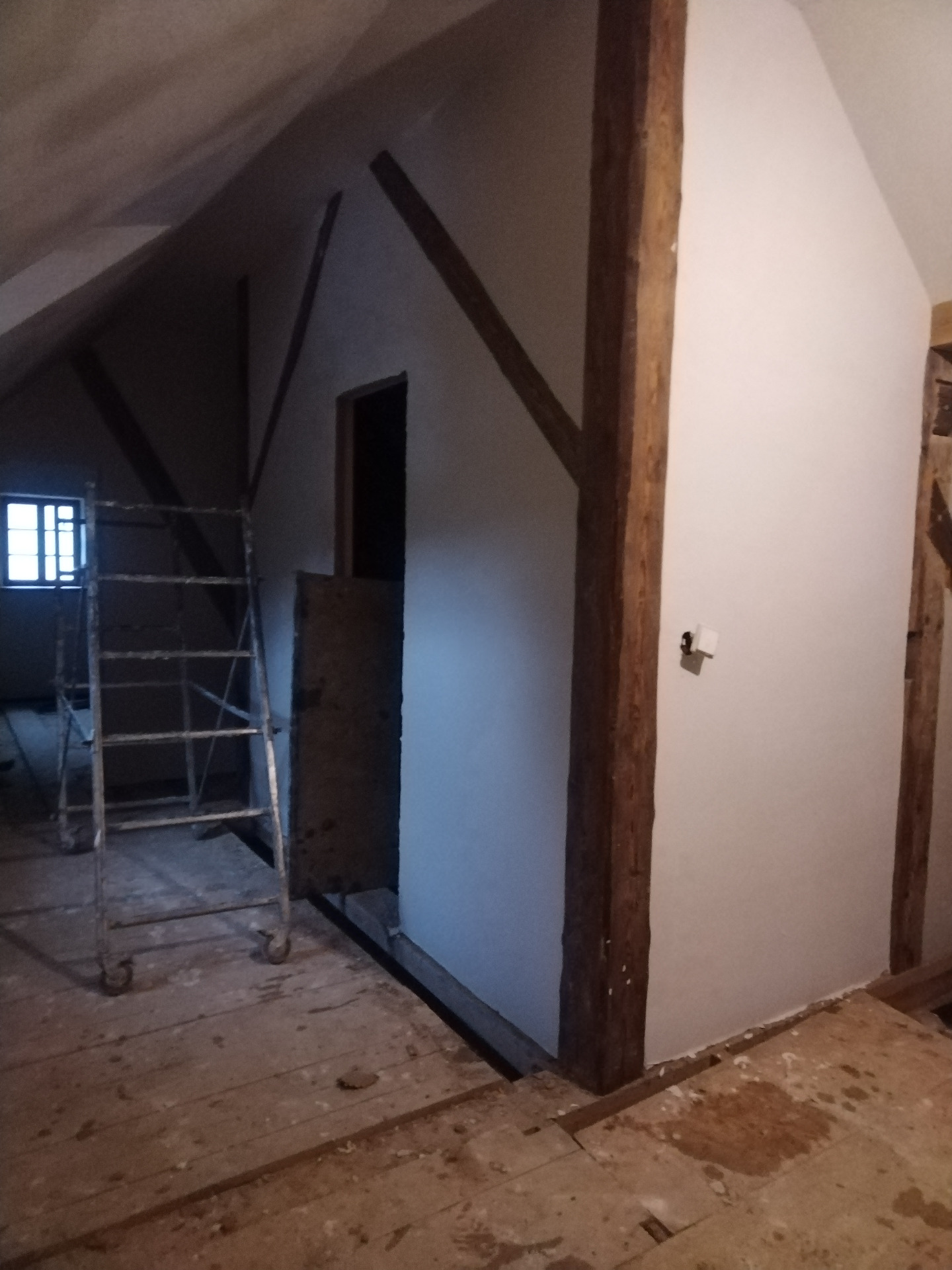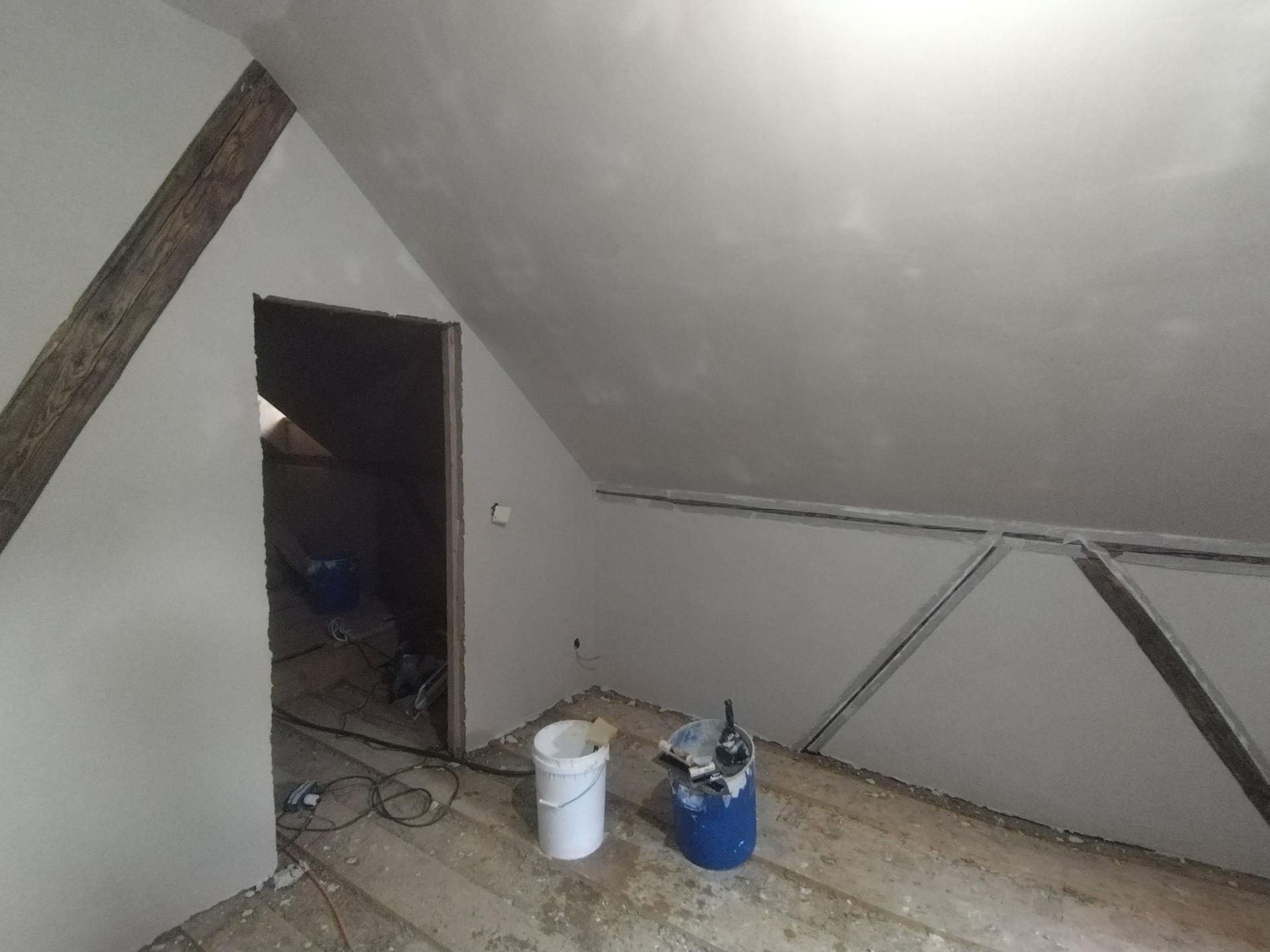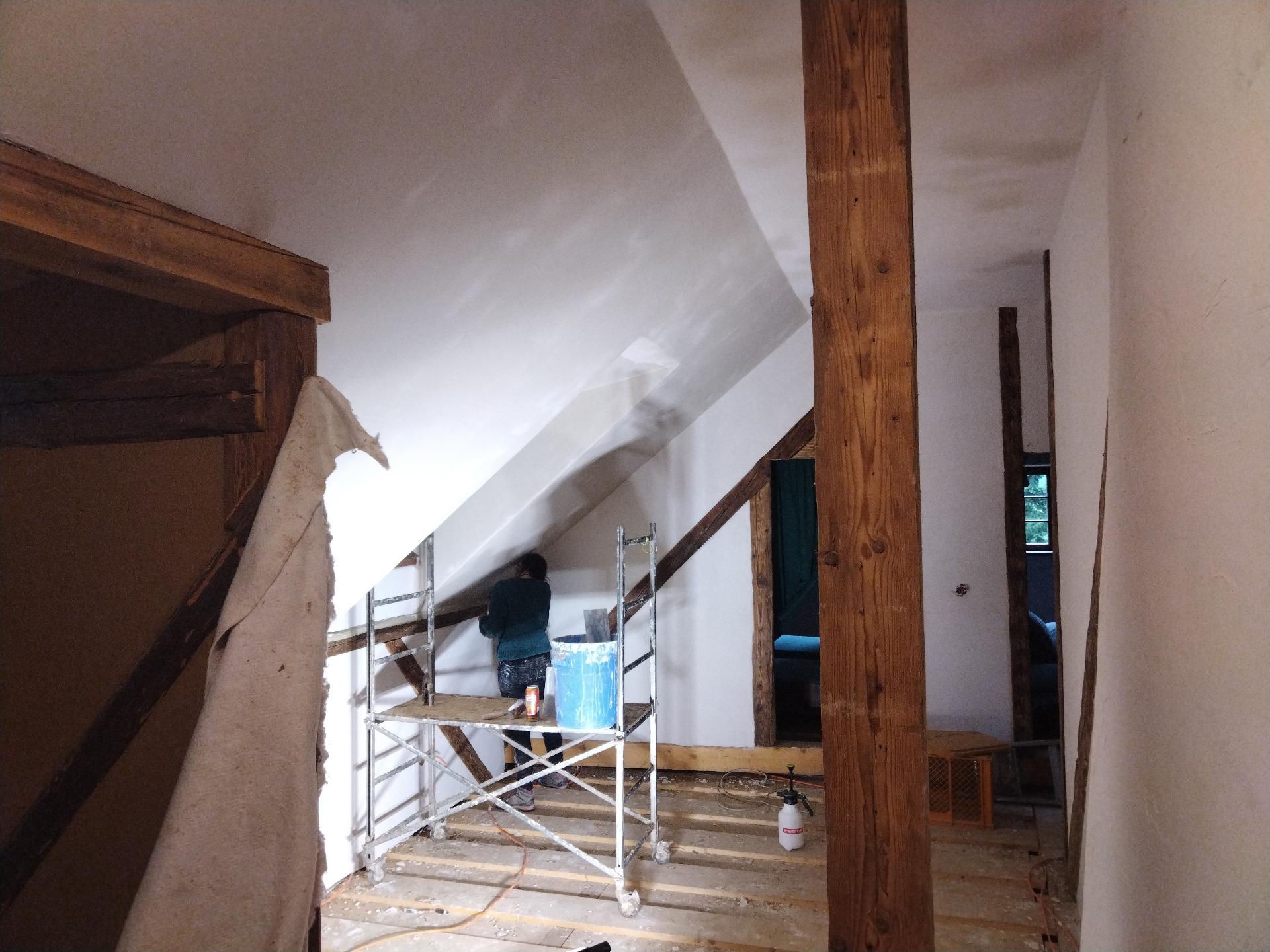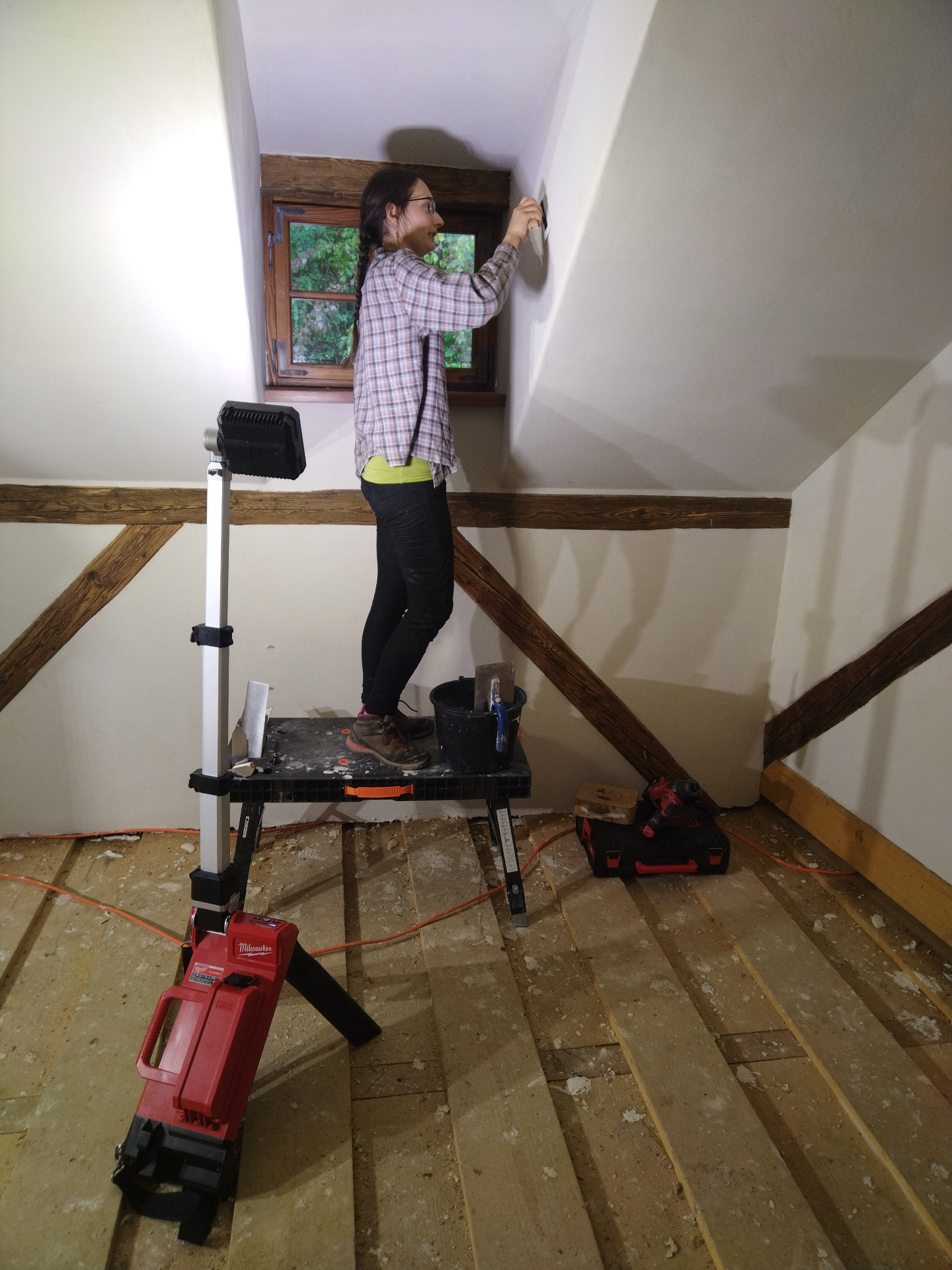 Hladené biele hlinené omietky s jemnou štruktúrou vytvorenou pomocou hladítka. Veľa detailov, práca ako stvorená pre mňa.