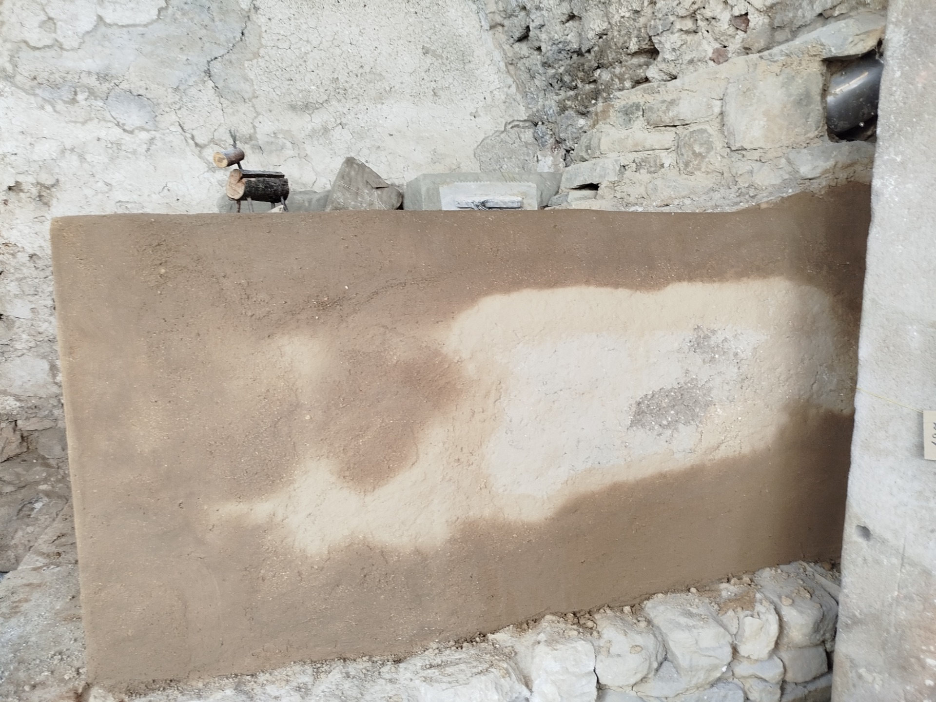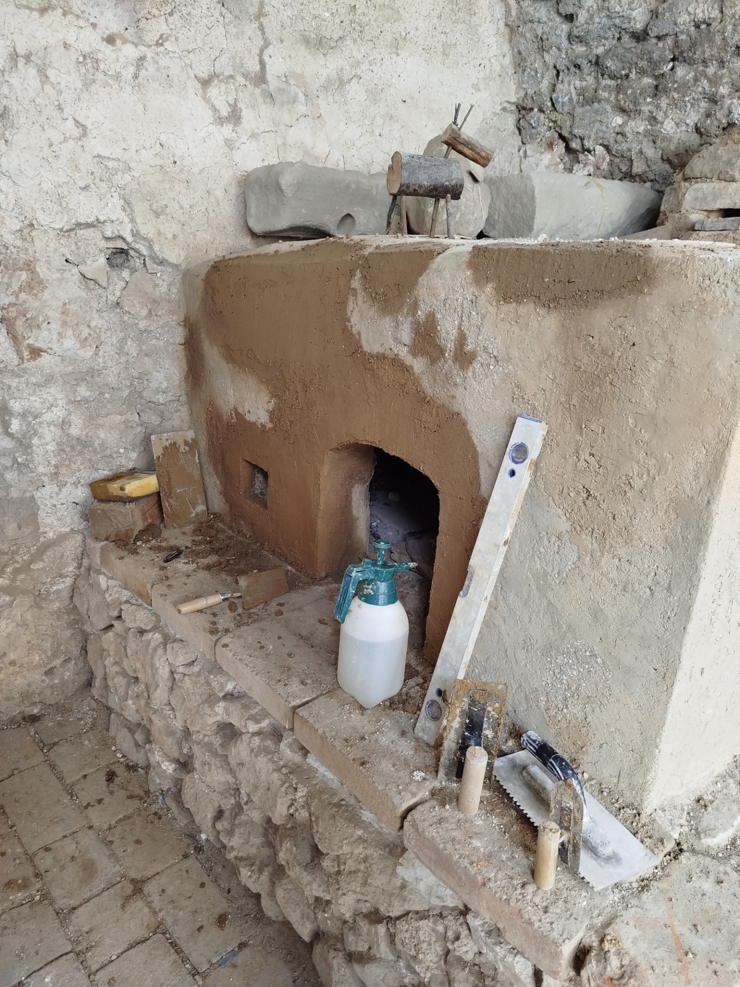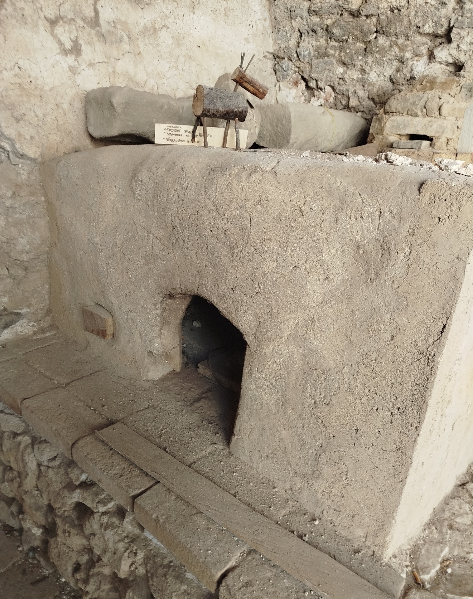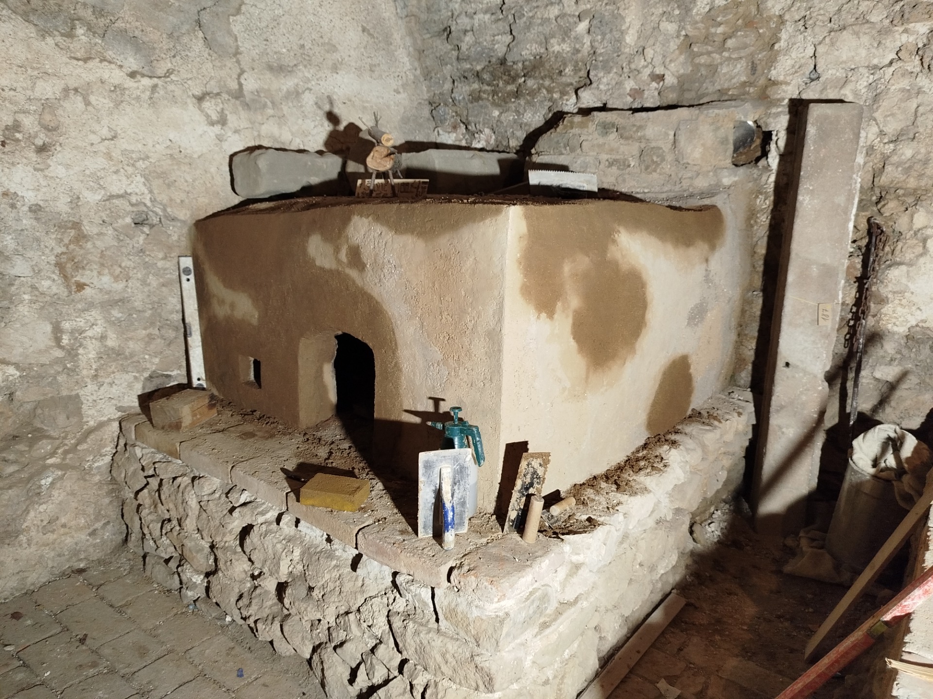 Oprava pôvodnej hlinenej chlebovej pece na hrade Uhrovec podľa pôvodného historického zloženia. Lokálny materiál.