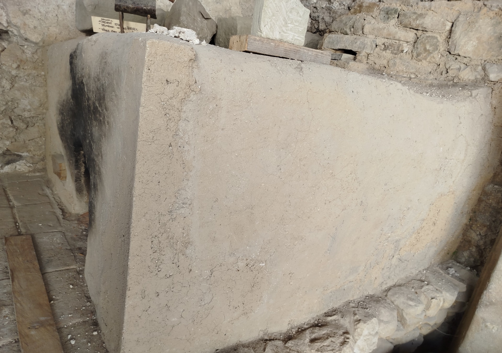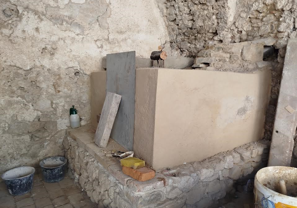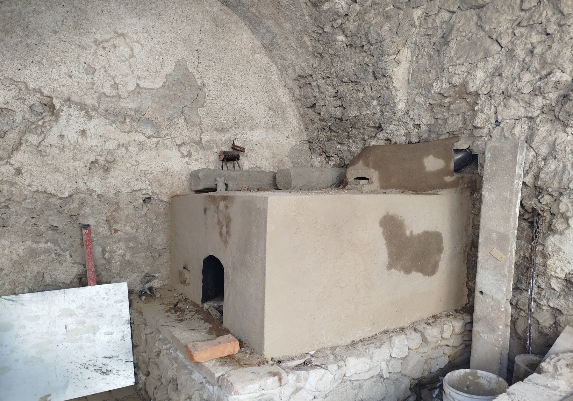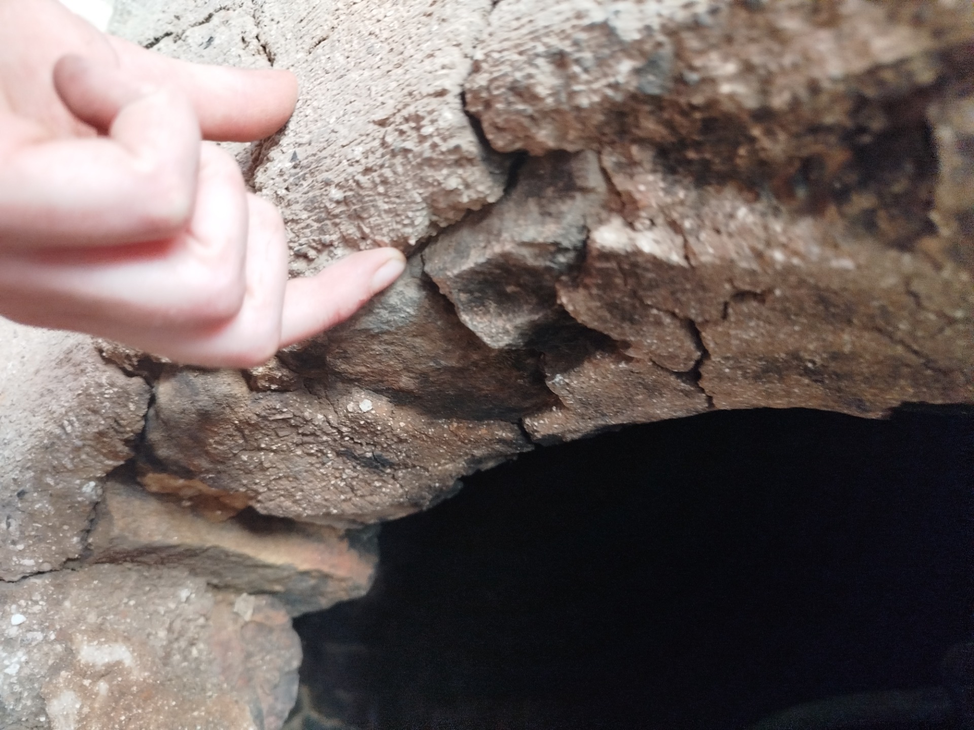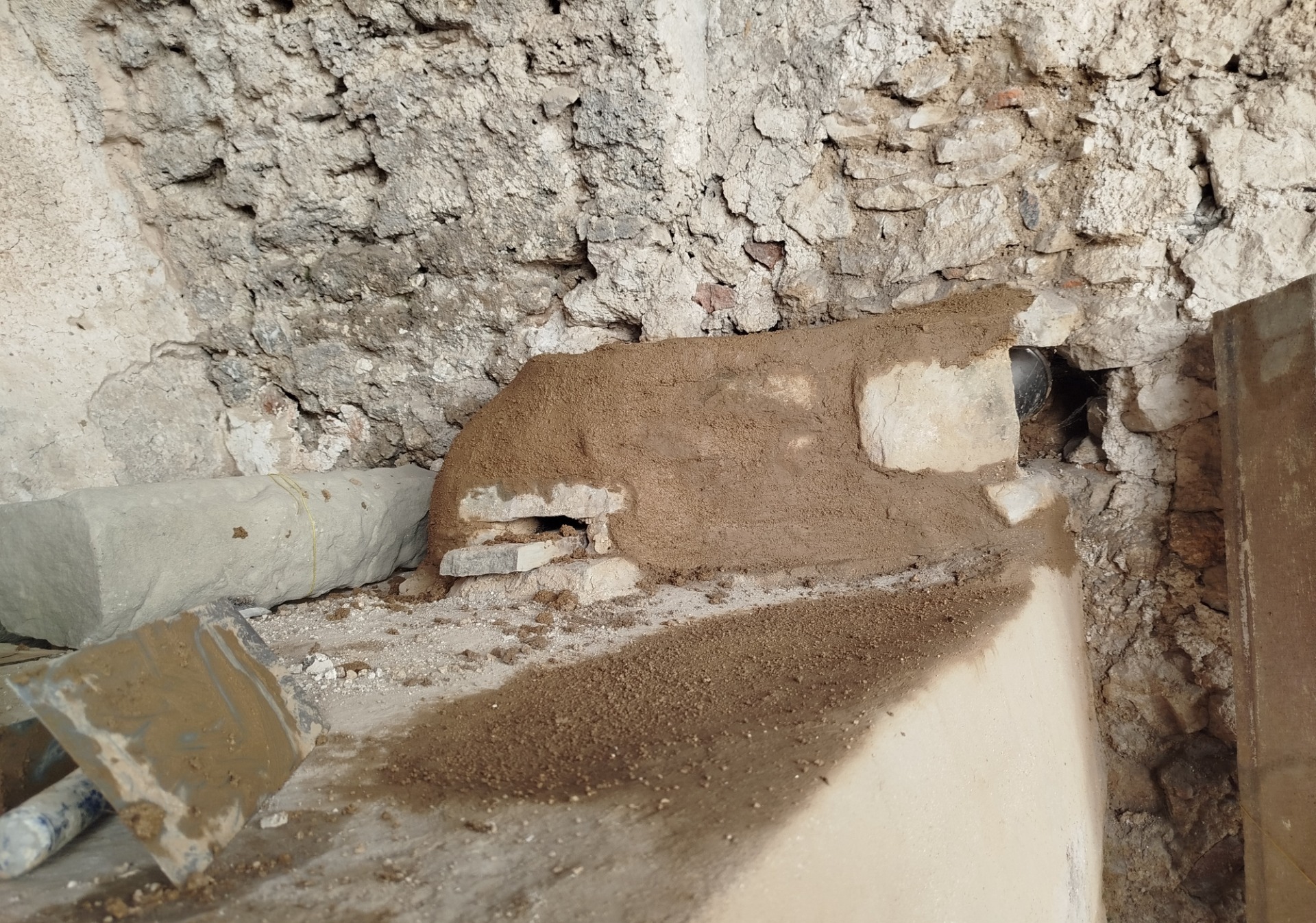 Oprava pôvodnej hlinenej chlebovej pece na hrade Uhrovec podľa pôvodného historického zloženia. Lokálny materiál.