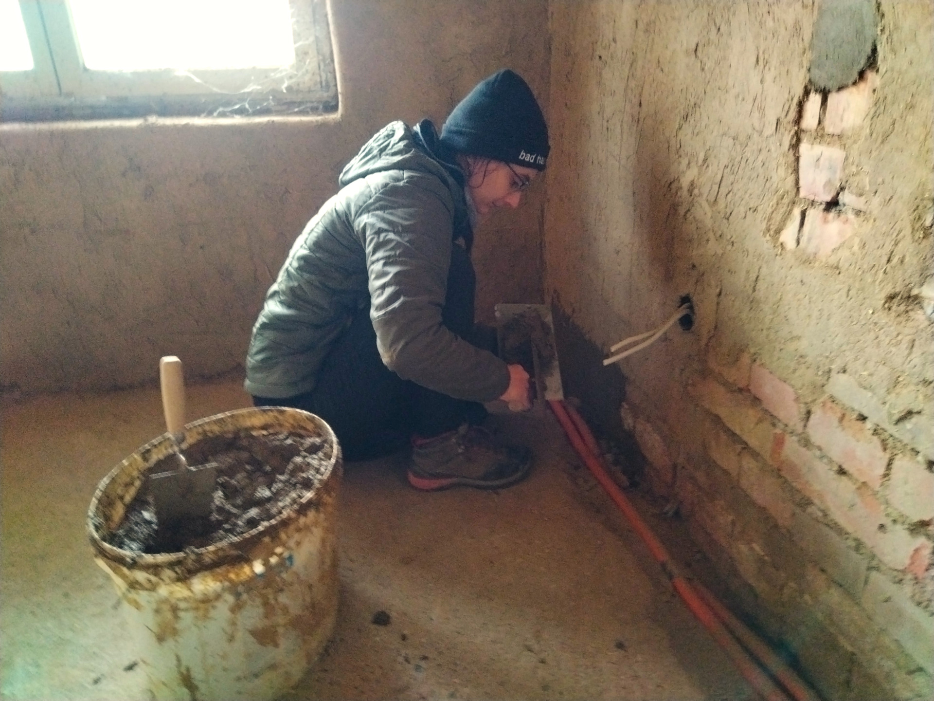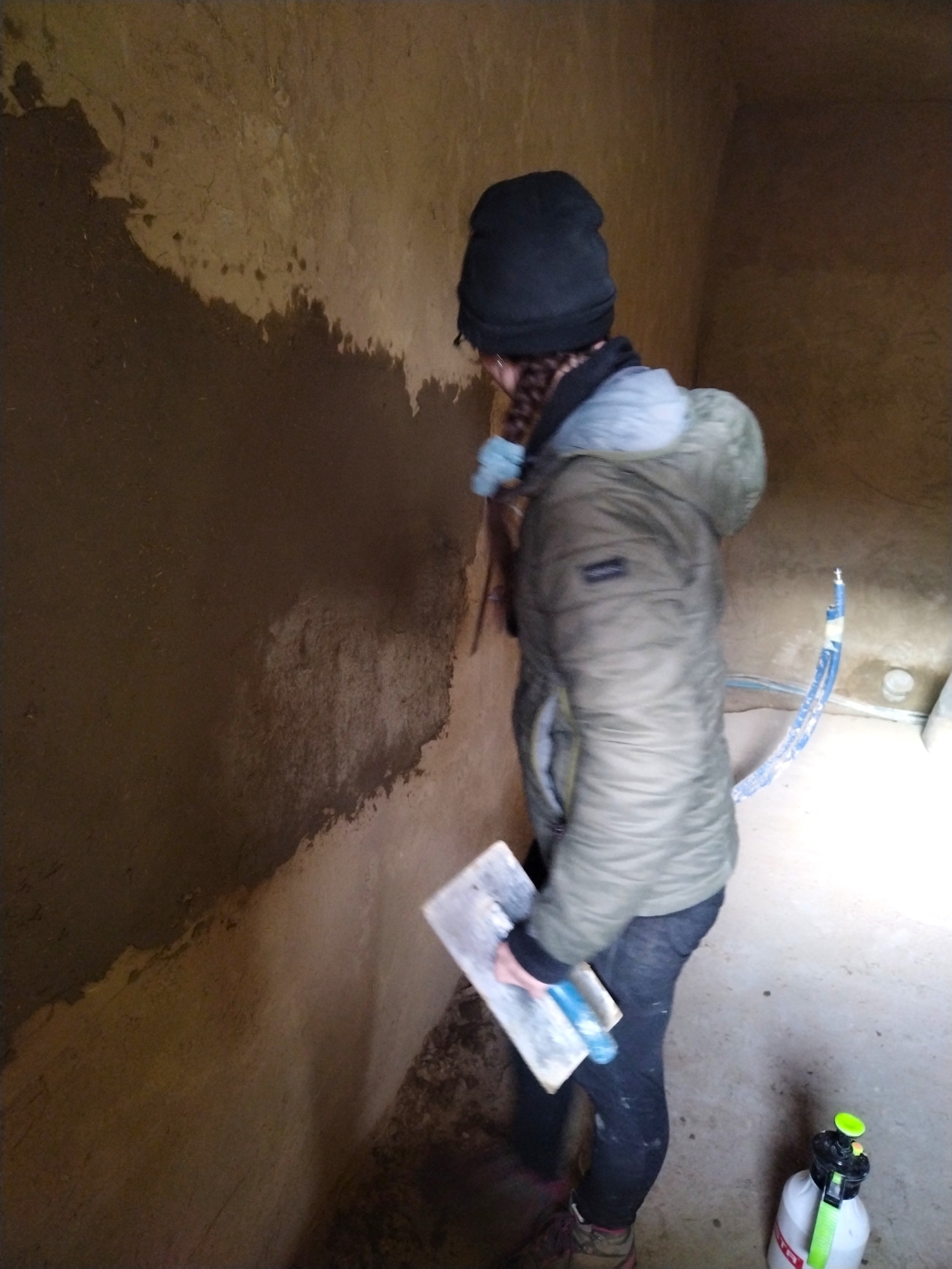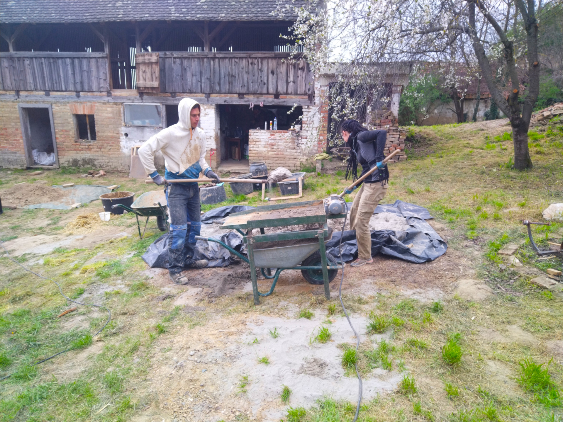 Hrubé hlinené omietky z lokálnej hliny v Knieževi Vinogradi na jar i na jeseň.
